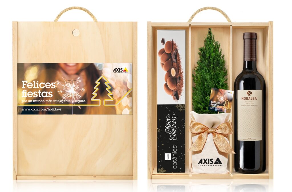 Estuches regalo Navidad con bombones y vino Axis